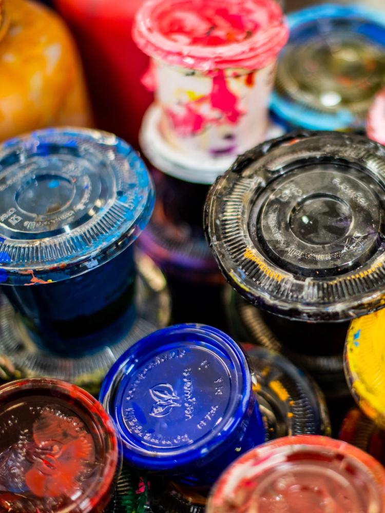 Materials for screenprinting onto textiles includes calico, padded boards and tabletops, flock, foil and puff binder as well as disperse dyes.