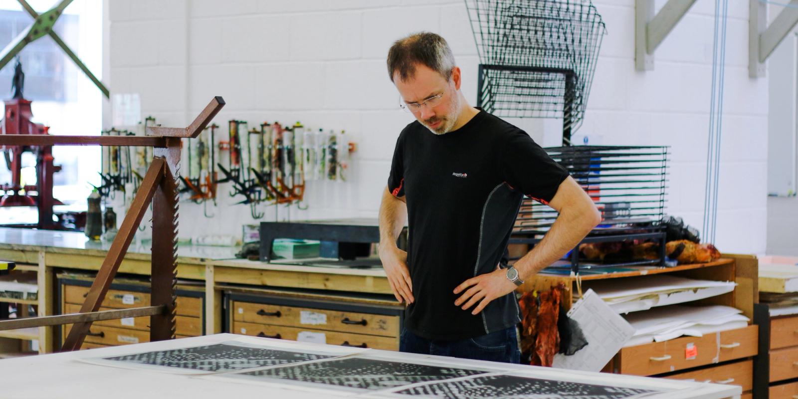 Our open plan studio is fully equipped with facilities and expertise in Intaglio (including Etching, Aquatint, Mezzotint, Drypoint, Collagraph, Photo Etching and Solar Plate); Relief (including Wood Cut, Lino Cut, Wood Engraving, Letterpress); Screenprinting (including textiles); Lithography (including stone and photo plate lithography); Monoprint/monotype and framing.