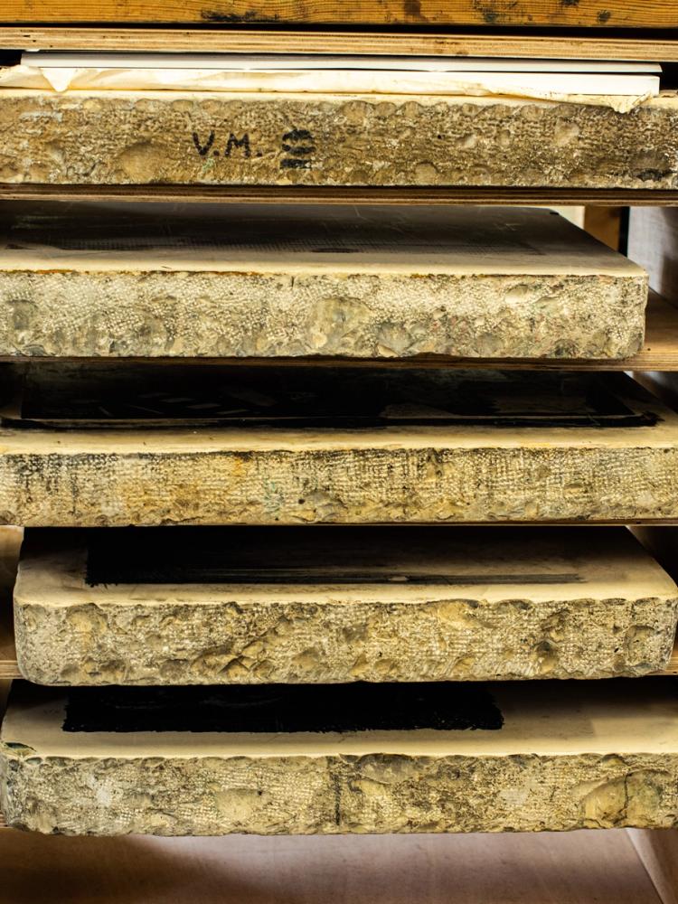 Invented by Aloys Senefelder in Germany 1796, through experimenting with finding a cheap method to reproduce musical scores, lithography (from the Greek: lithos – stone, and graphein – to write) is a planographic printmaking technique.