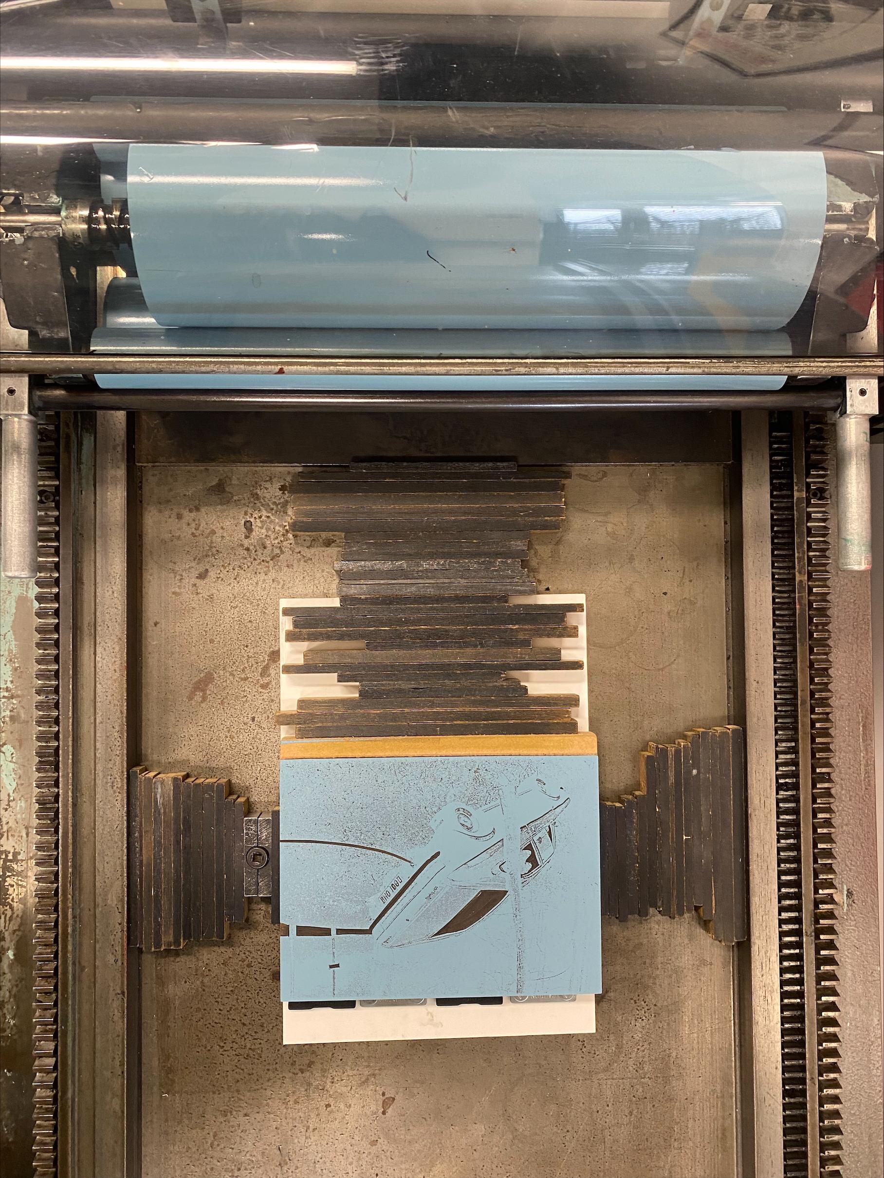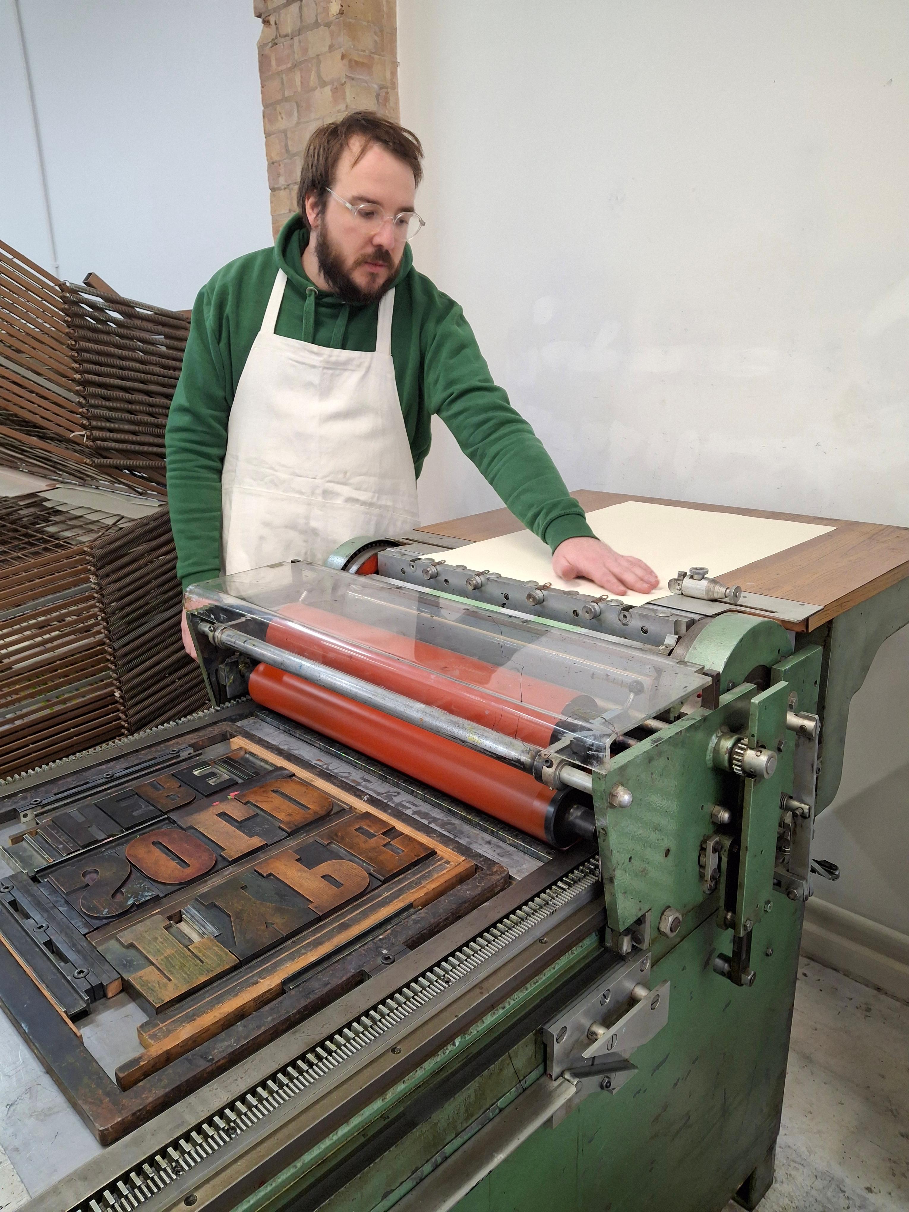 You will spend a day using this press which is set at "type high" - any relief plate can be used, from woodcuts, photopolymer, type or lino.
